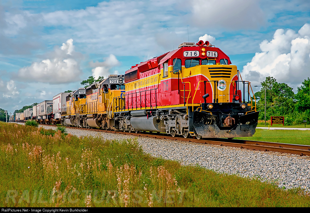 RailPictures.Net Photo: FEC 716 708 709 Florida East Coast Railroad (FEC) EMD SD40-2 at Edgewater, Florida by Kevin Burkholder