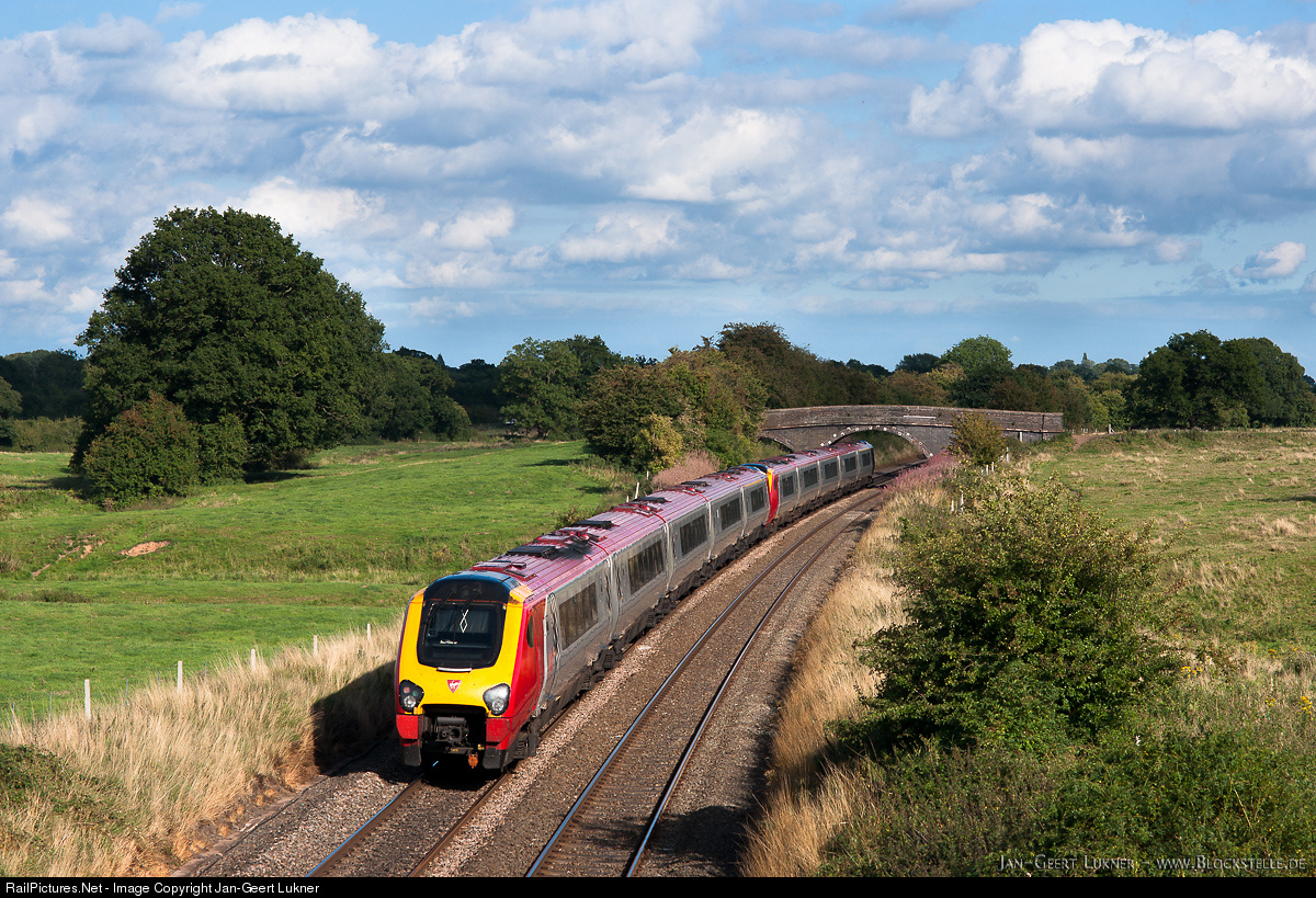 A Virgin fast train from Chester heads through beautiful english landscape for Crewe, from where it continues on Westcoast Mainline for London Euston.