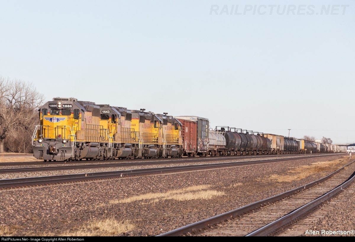 | UP 1886, 1643, 1589, & 1645 head for North Platte with the Grand Island turn. |