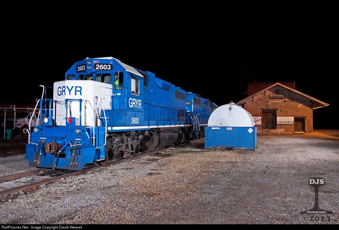 | Grenada Railway GP38-2s NÂș2603 and 2651 idle during the cold night at the former IC depot in Grenada, Ms. in the early morning hours. Come daybreak it'll be another day of work on the former IC Grenada District. |