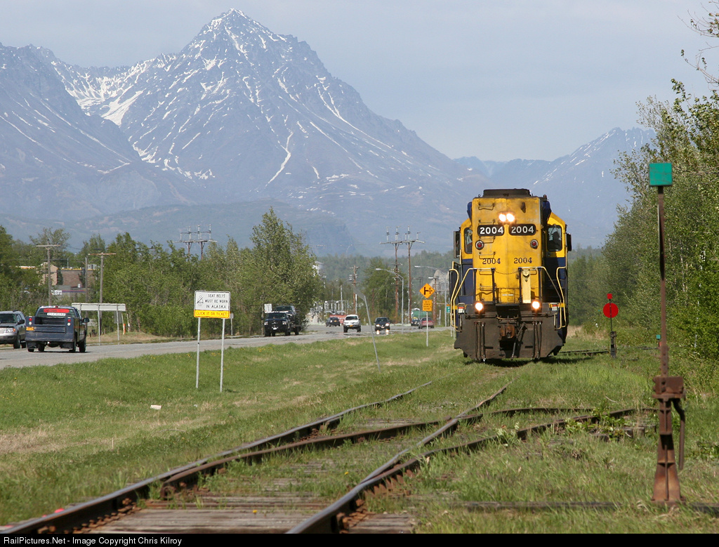 On its last-ever run this far north, the Alaska Railroad Palmer Turn runs light up the 10 mph Palmer Branch enroute to JD Steel, which was located at the end of the in-service track at Palmer Airport, to fetch two gondolas. Once these gons were removed, the track from here to the airport was never used again, and was abandoned less than a year later.