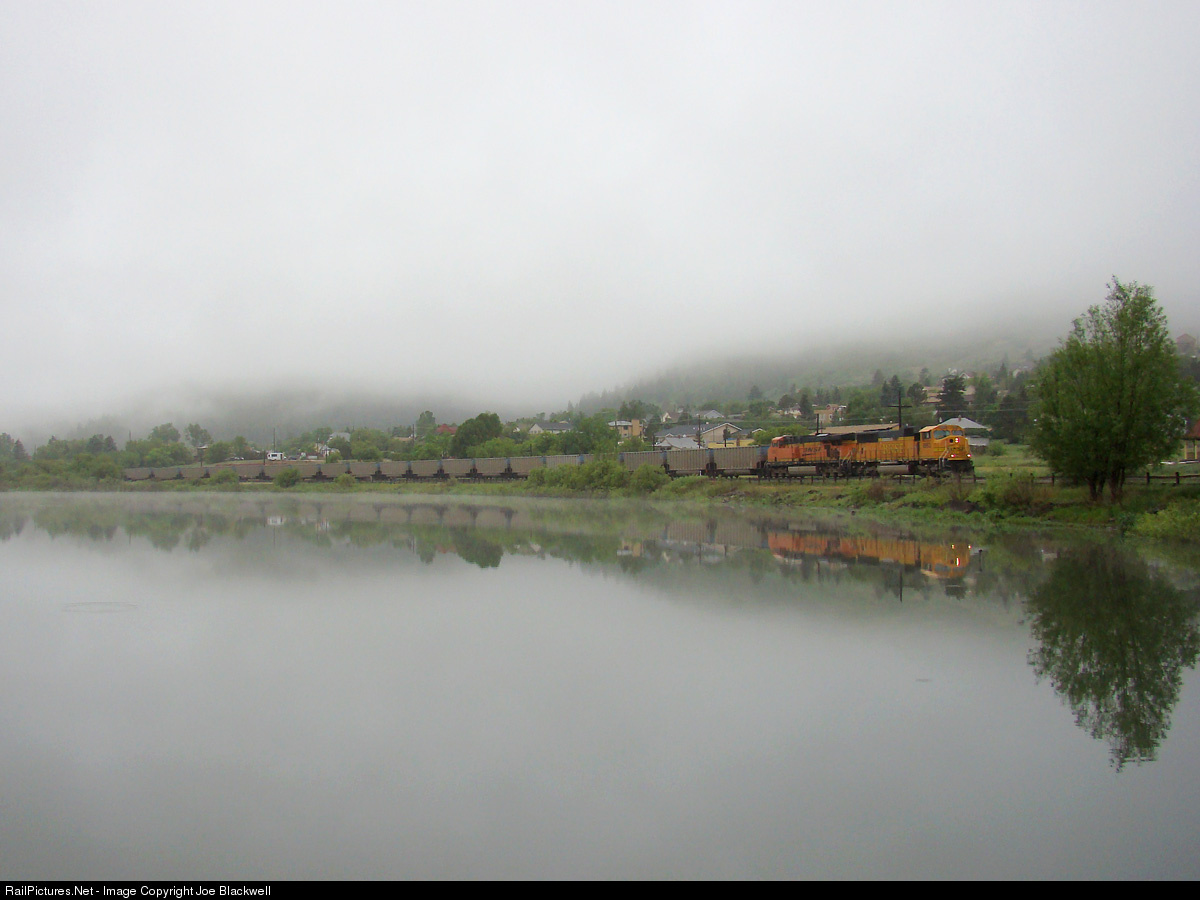Palmer Lake was showing one of it's many moods a few years ago when it was still a lake as a northbound BNSF coal empty passed by headed for Denver and points north.