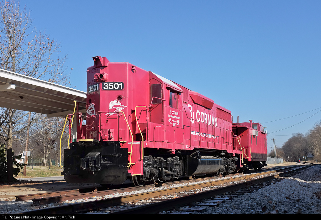 This GP35M started life with Southern Railway as GP30 #2641. After being wrecked it was rebuilt as an GP35M, and ended her days of service as part of the RJ Croman fleet. Still sporting her high hood, she now sits as a static display at the restored L&N depot in Clarksville, TN. The years of sitting in the sun have faded her rich, red, RJC paint job to pink.