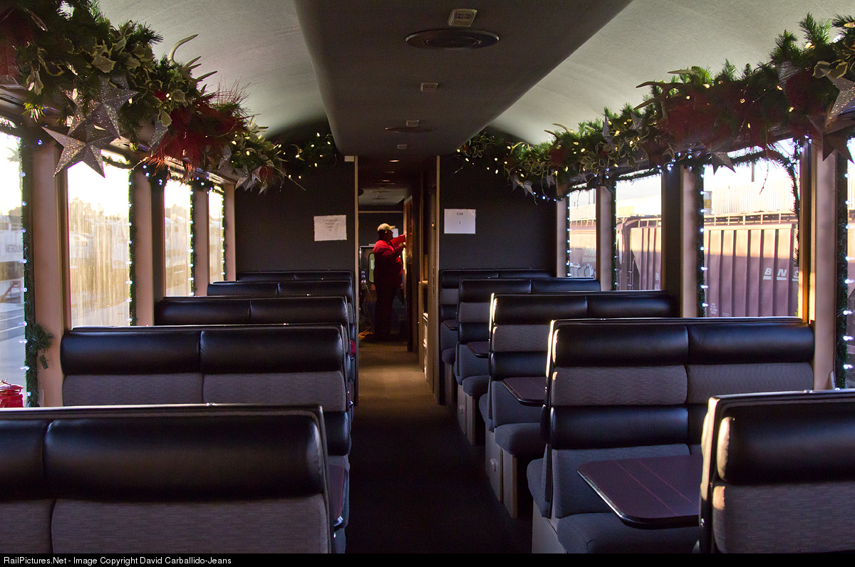 Inside of the BNSF gallery car, Powder River, after making its last trip of Cajon Pass on the BNSF Christmas Train.