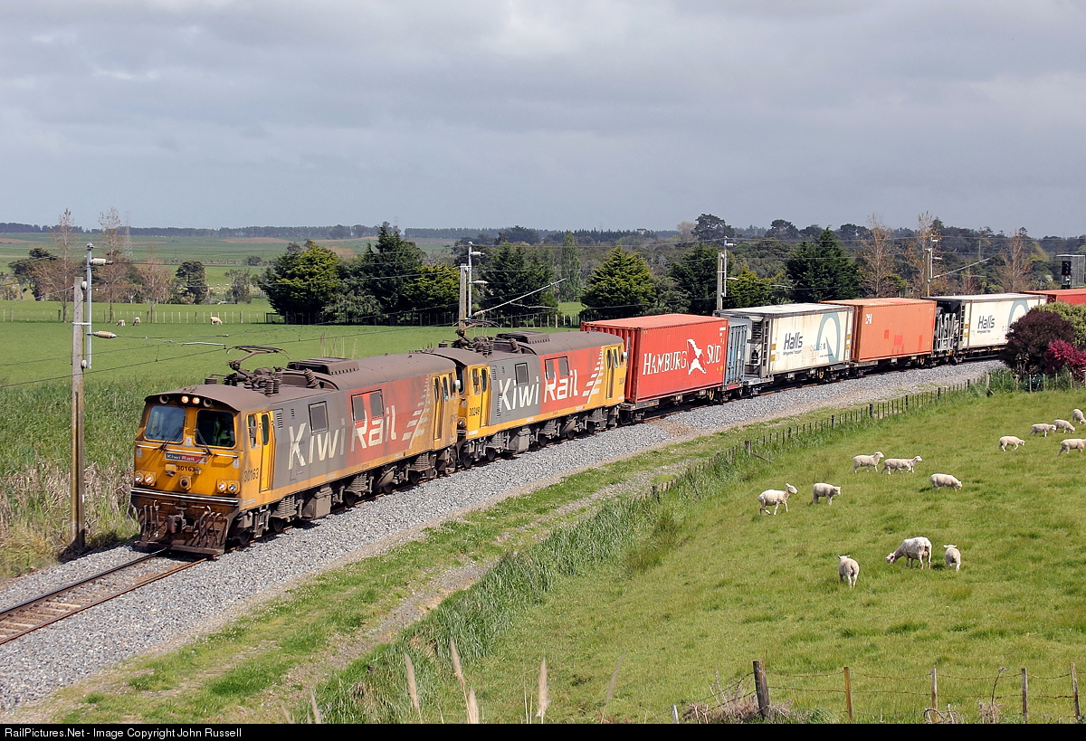 | EF 30163 leads 30249 hauling manifest train 219 bound for Wellington, seen just south of Marton. The EF locomotives are the most powerful on the KiwiRail network and were built in the mid 1980's by Brush in UK. |