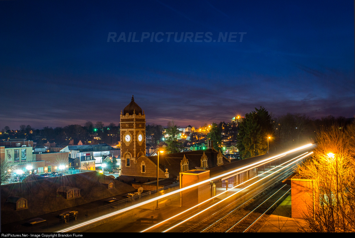 NS SD40E Lights up the Greensburg Station Platform past the historical station.