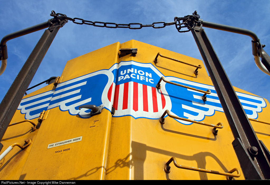 EMD wide-nose locomotives such as SD70Ms on Union Pacific featuring winged logos are not exactly centered on the nose, but is is especially noticeable on newer SD70ACes, due to the size and location of the nose door and the desire to include all lettering on the shield logo. The nose of UP SD70ACe No. 8620 is seen at Joliet, Illinois, on November 10, 2010. In the “big scheme” of things, the offset logo is hardly apparent and the wings are certainly a wonderful addition to the nose of UP locomotives.