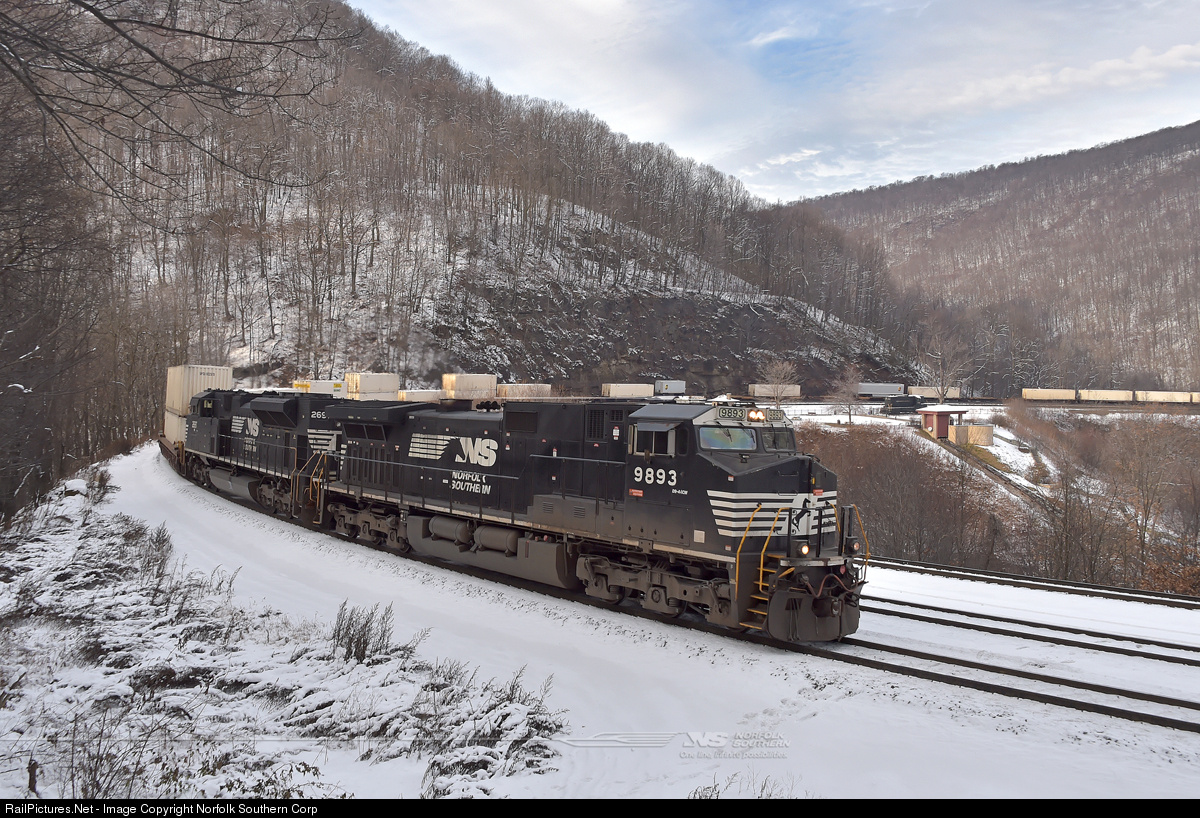 Intermodal train 21E moves container and trailer traffic between Morrisville, Pennsylvania and Willow Springs, Illinois. The November 29th edition of 21E is seen here dashing through the snow on track three, climbing the mountain out of Altoona, PA, around Horseshoe Curve. Photo by Casey Thomason. For more information about Norfolk Southern, visit www.nscorp.com