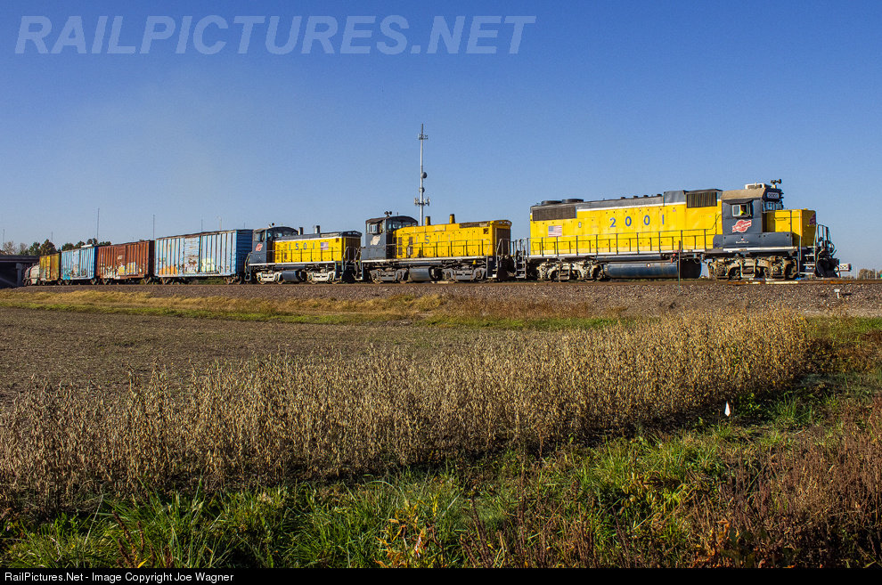 An Alton & Southern "Odyssey Set", consisting of GP38-2 #2001 and a pair of SW1500's, bring ALS job 301, north, through Washington Park, IL and under the busy Interstate 64. This move is headed for Rose Lake Yard just north of here in Exermont where the long transfer will be handed off to the CSXT and become train Q332 for Indianapolis, IN.