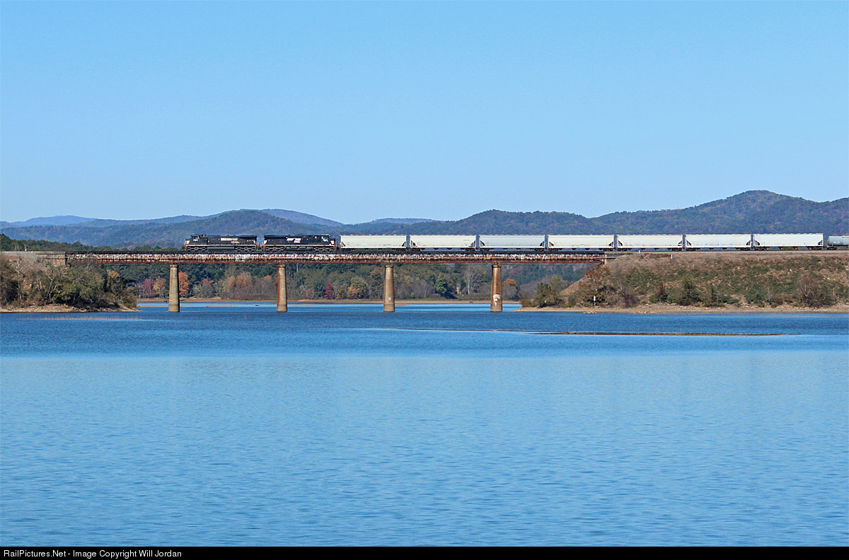 NS 153 emerges from The South Carolina mountains and enters the somewhat flatter land of Georgia. The morning sun is beaming hard on Lake Hartwell this morning, which is also illuminating the mountain ranges that stand guard over the lake. Two dash 9's pull the train southbound towards Atlanta, Georgia, and then on to Birmingham, Alabama where a new train will be picked up, and a new crew will bring NS 154 northbound to Linwood, North Carolina!