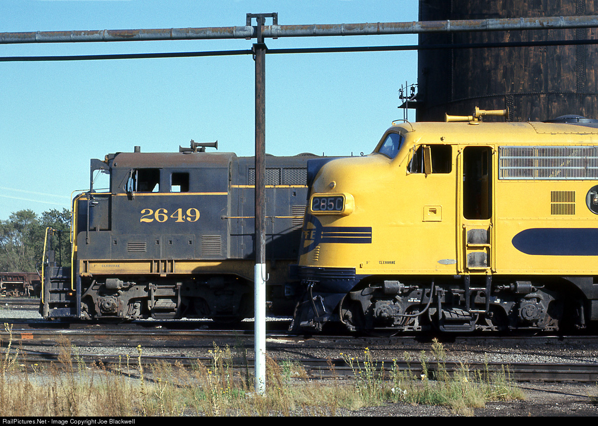 Santa Fe's original CF7 rebuild, 2649, the only one that retained the original F unit cab from which it was built rests side by side with an F unit which will eventually be transformed into a CF7 or Cleburn rebuilt F 7, hence the model designation. All post rebuilds received modified cabs.