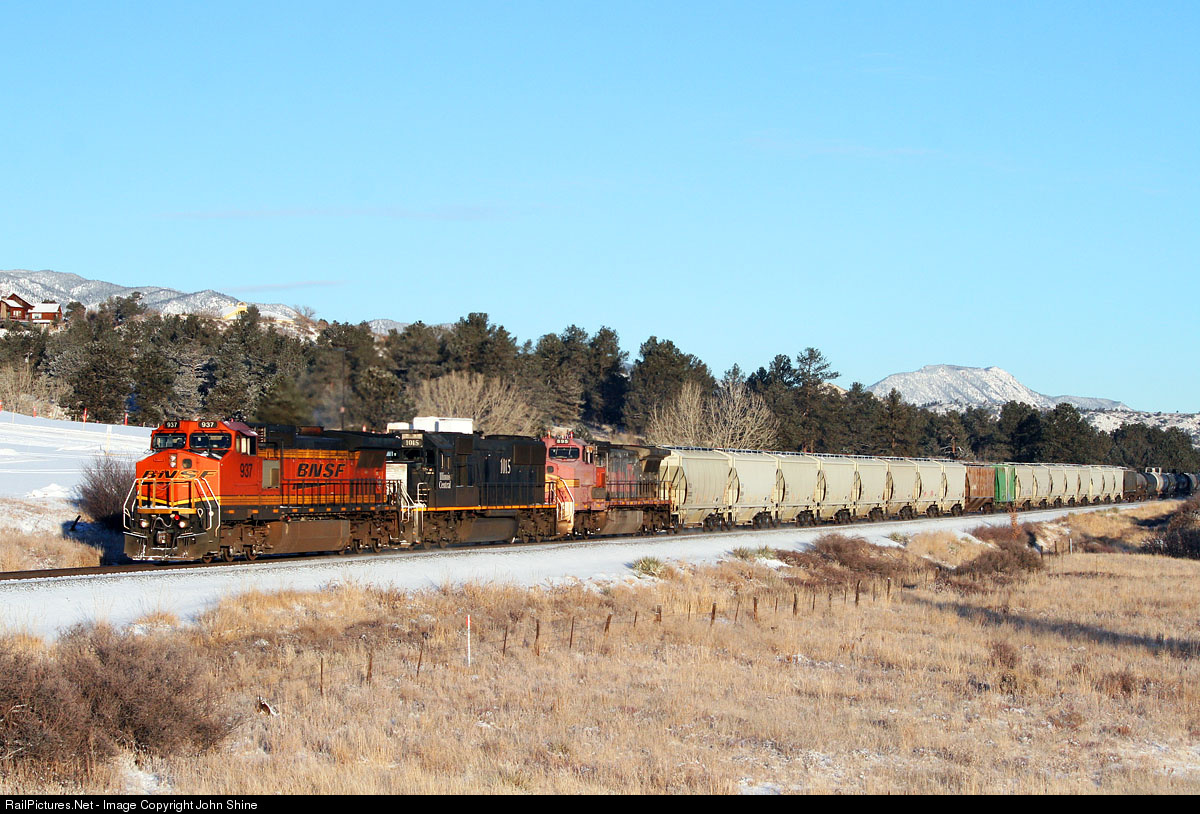 | BNSF 937, a repainted Warbonnet engine leads an unusual visitor to Colorado, Illinois Central SD70 1015 along with BNSF 895 on a Southbound manifest. |