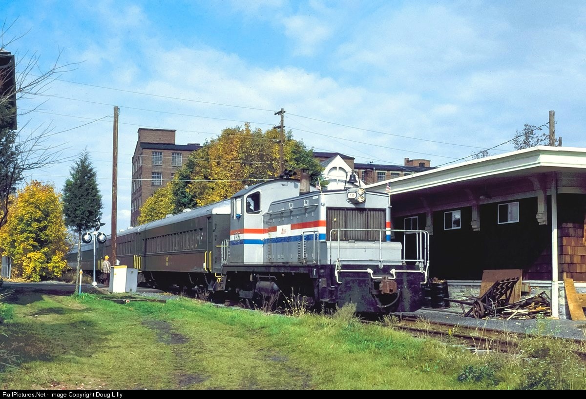 | Anthracite Railway operated several excursions while it was the operator of the northern portion of the ex-Reading Perkiomen branch. Here is one of those excursions, with their ex-Amtrak SW1 in charge, passing the former station at East Greenville. |