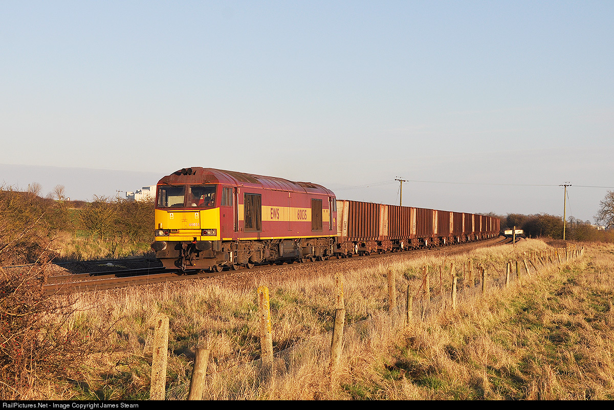 | A work-worn 60035 approaches New Barnetby crossing with an Immingham - Santon loaded Iron Ore train. This route is now the sole surviving Iron Ore rail operation in the UK bringing imported ore to the massive steelworks at Scunthorpe. 60035 is on borrowed time being one of the last examples of the fleet which is still in traffic without overhaul. |
