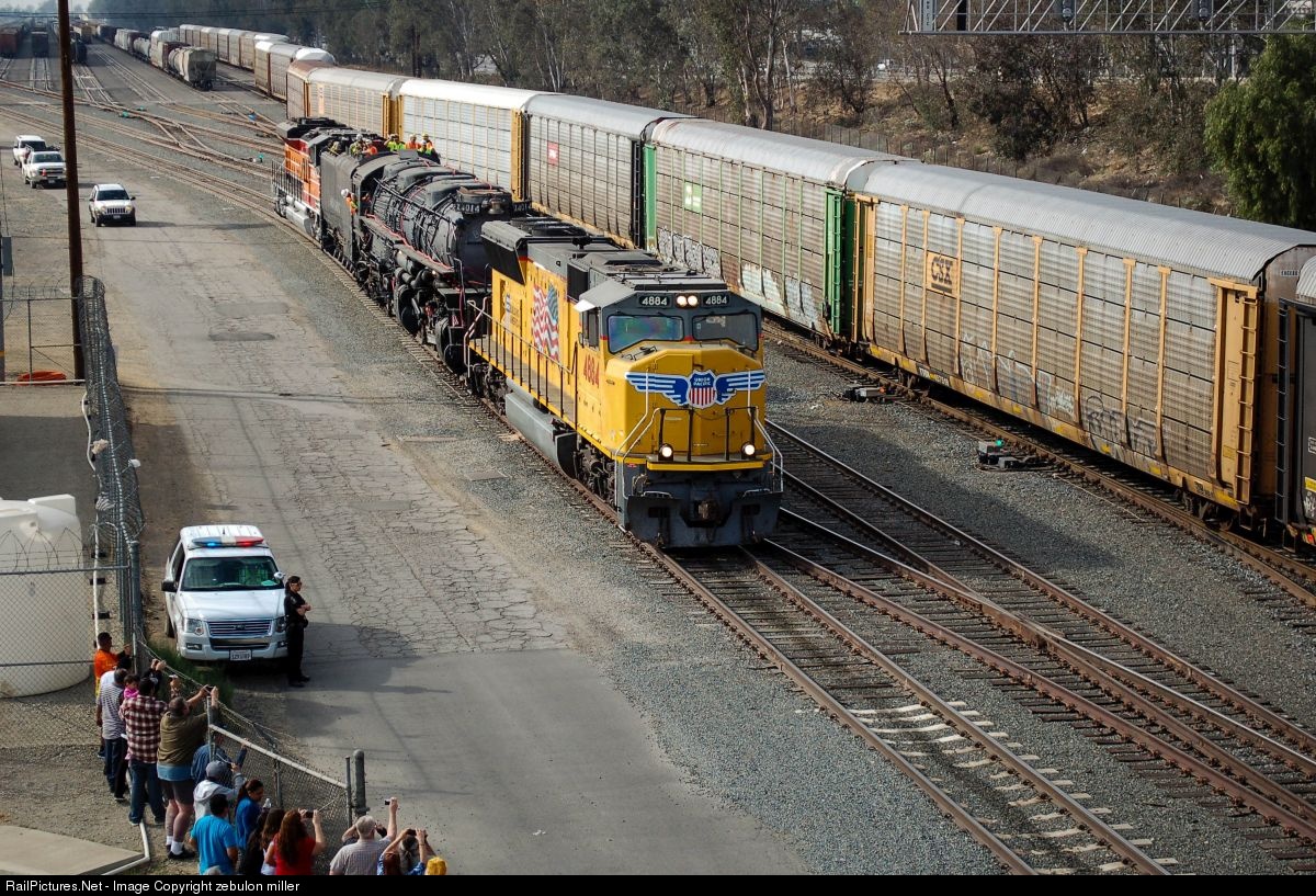 UP 4884 pulls into W.colton yard with UP 4014 in tow to be prepared for the second leg of the trip to the cheyenne steam facilities.