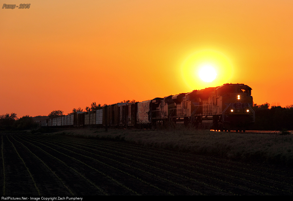 The sun is setting fast and UP Train QNPCXP 15 also making good time on its trip away from the light on the UP Kansas Sub.