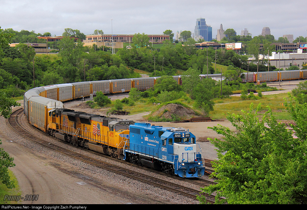 For whatever reason, UP Train AAMEW 28 left town with a GMTX GP38-2 leader followed by a pair of UP SD70M's. Whatever the reason, the crew's "luckiness" or what have you, it looked nice here passing the former site of the Frisco Rosedale and Katy Glen Park Yards on the BNSF Ft. Scott Sub. GMTX 2250 was built as a GP38AC, DT&I 213 in April 1970, builder number 36336. It passed to the Grand Trunk Western as GTW 6213, and wound up in the Joint Venture EMD-GATX Locomotive Leasing Partners fleet as LLPX 2213 before getting GMTX markings last winter. It had been working various locals out of the Kansas City area, including Lawrence and Topeka, KS until ending up on this train.