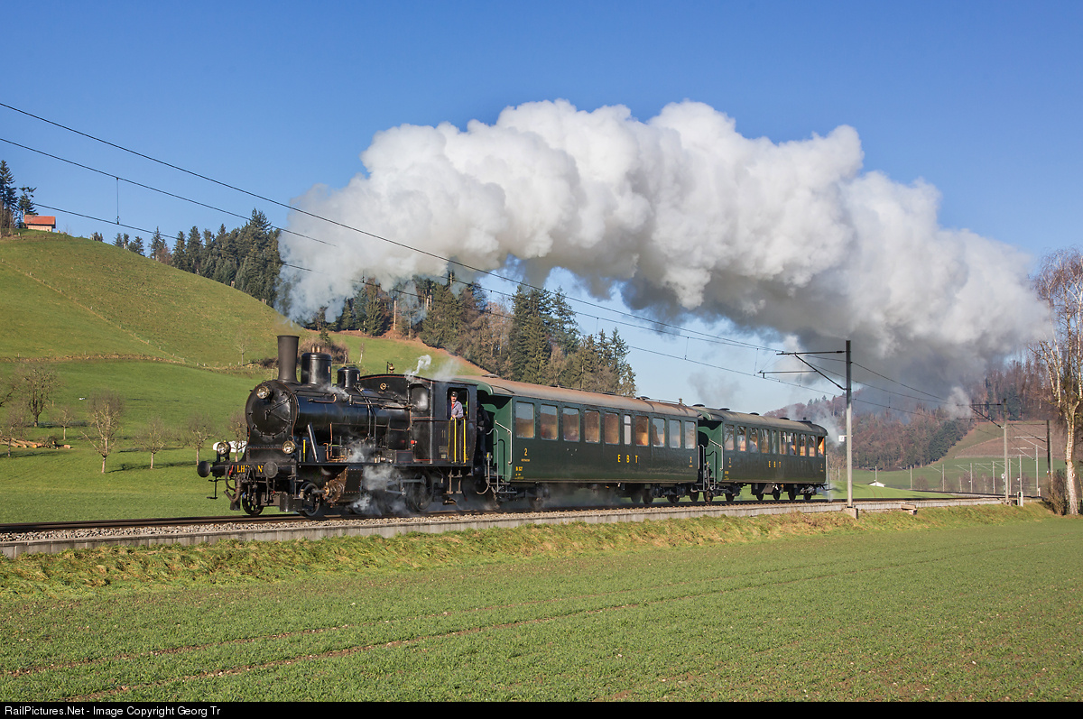 | 2-6-0 T steamlocomotive Ed 3/4 # 11 of the former Langenthal-Huttwil-Bahn (LHB), built in 1908 by SLM Winterthur and now running for the association Historische Emmental Bahn (VHE) in Huttwil, with a special train for the Railway Touring Company from GB, near Willisau between Huttwil and Wolhusen. |