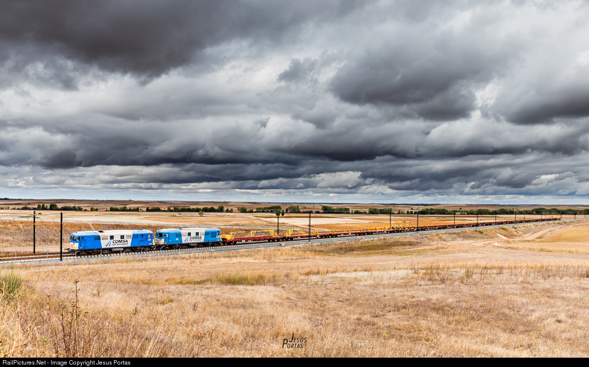 L18 and L17 with a rail train ready to be unloaded in the Valladolid-Leon section of Noth-West HSL.