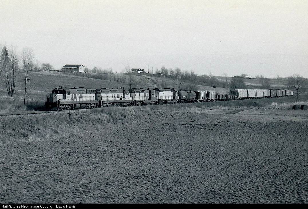A train made-up in the Marshalltown yard heads for Minnesota on the former M&StL line. The power includes two of C&NW's rebuilt early SDs, a GP7, and one of the GP38-2s ordered by Rock Island but diverted to C&NW after Rock's bankruptcy. I believe this line is OOS, though it may still be in place.