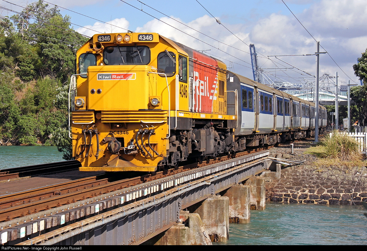 Trains on 3' 6" (1.067m) track from Whangarei to Bluff with virtually heritage rebuilt EMD and GE locomotives still the mainstay power. The network was privatized in 1990's and operated by Toll until 2008 when state owned KiwiRail was established.