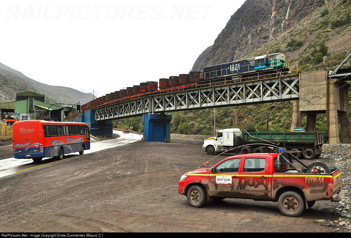| Departure of train FEPASA #50.983 from CODELCO Andina copper mine in Saladillo mining camp, in the Andes mountain. Saladillo is located in Rio Blanco, a little village and former station of the transandine railway Los Andes (Chile) and Mendoza (Argentina) in Andes mountain (closed in 1984 except the section Los Andes - Rio Blanco which remains open to serve a CODELCO Andina copper mine located in Saladillo, Rio Blanco). |