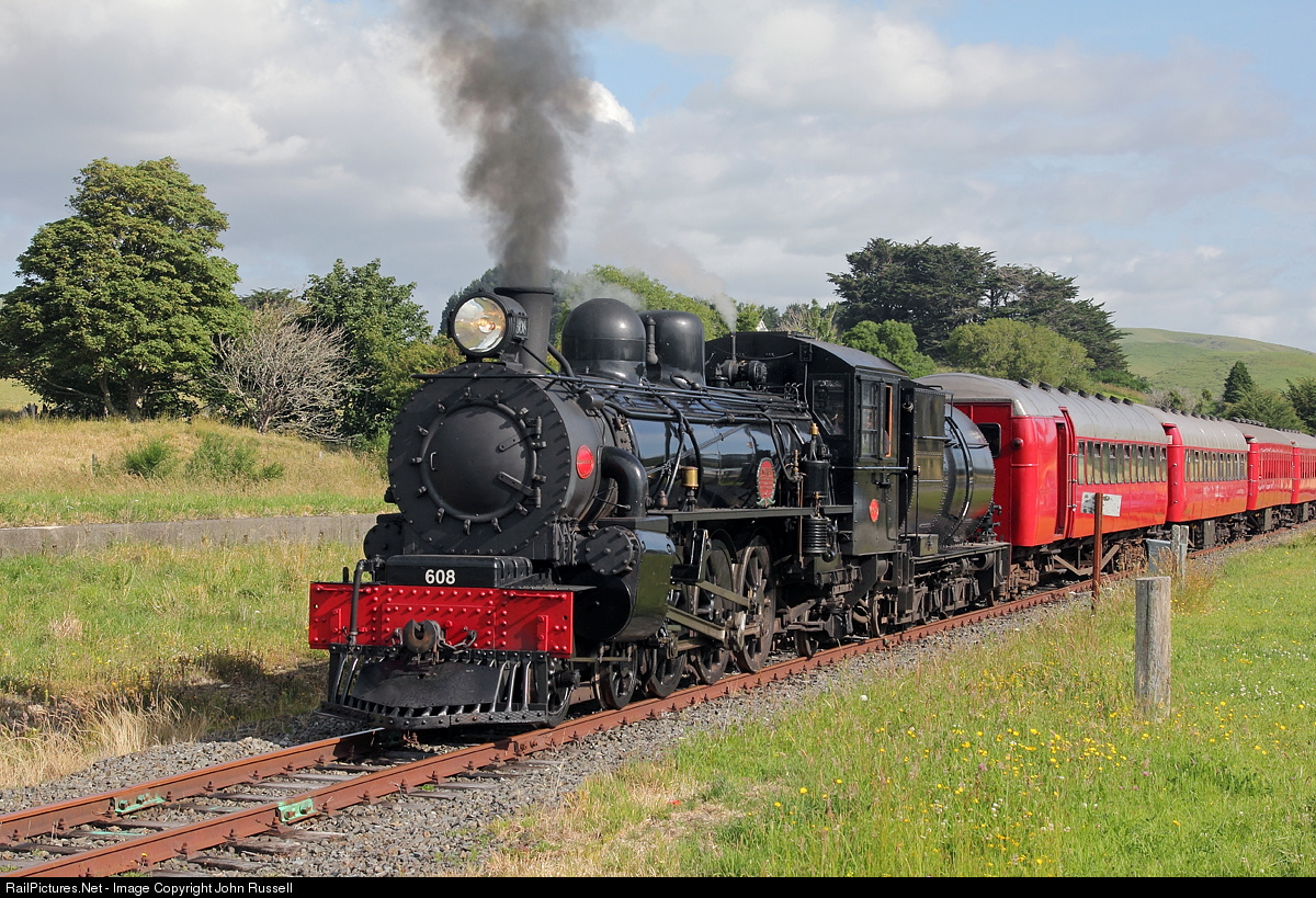 | Ab 608 was built by NZR Addington (Christchurch) in 1915 and named "Passchendaele" in 1925 as a War Memorial for over 400 railwaymen who perished in WW1. It is now owned by NZ Railway & Locomotive Society who restored it for the centenary. This year 608 ran the annual Ekatahuna Express to Masterton and back and is seen returning to the Paekakariki depot. |
