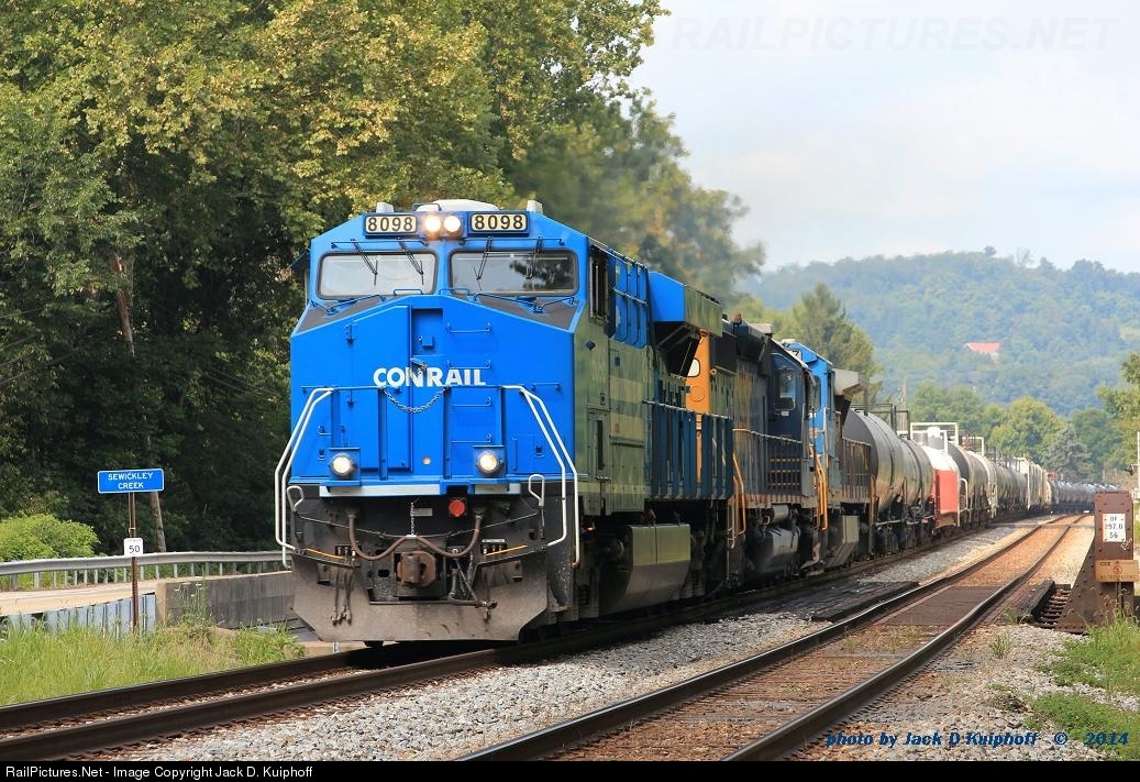 | CSX Q368 with NS 8098, leading a east bound over Sewickey Creek, at BF-297 CSX Pittsburgh sub, Gratztown, PA. 7/31/2014 |