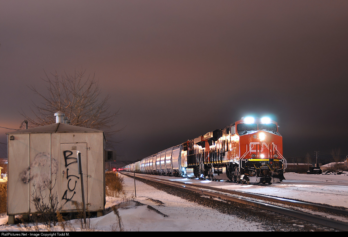Another cloudy night, another pair of fresh and clean ES44AC units (CN 2916 and CN 2836) with more new SCYX and NAHX hoppers waiting to move.