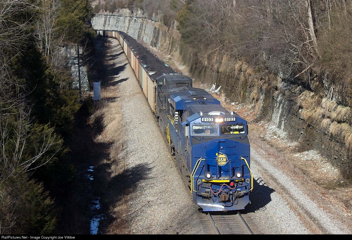 Down to a crawl pulling up Kings Mountain the N&W heritage unit leads a southbound loaded coal train.