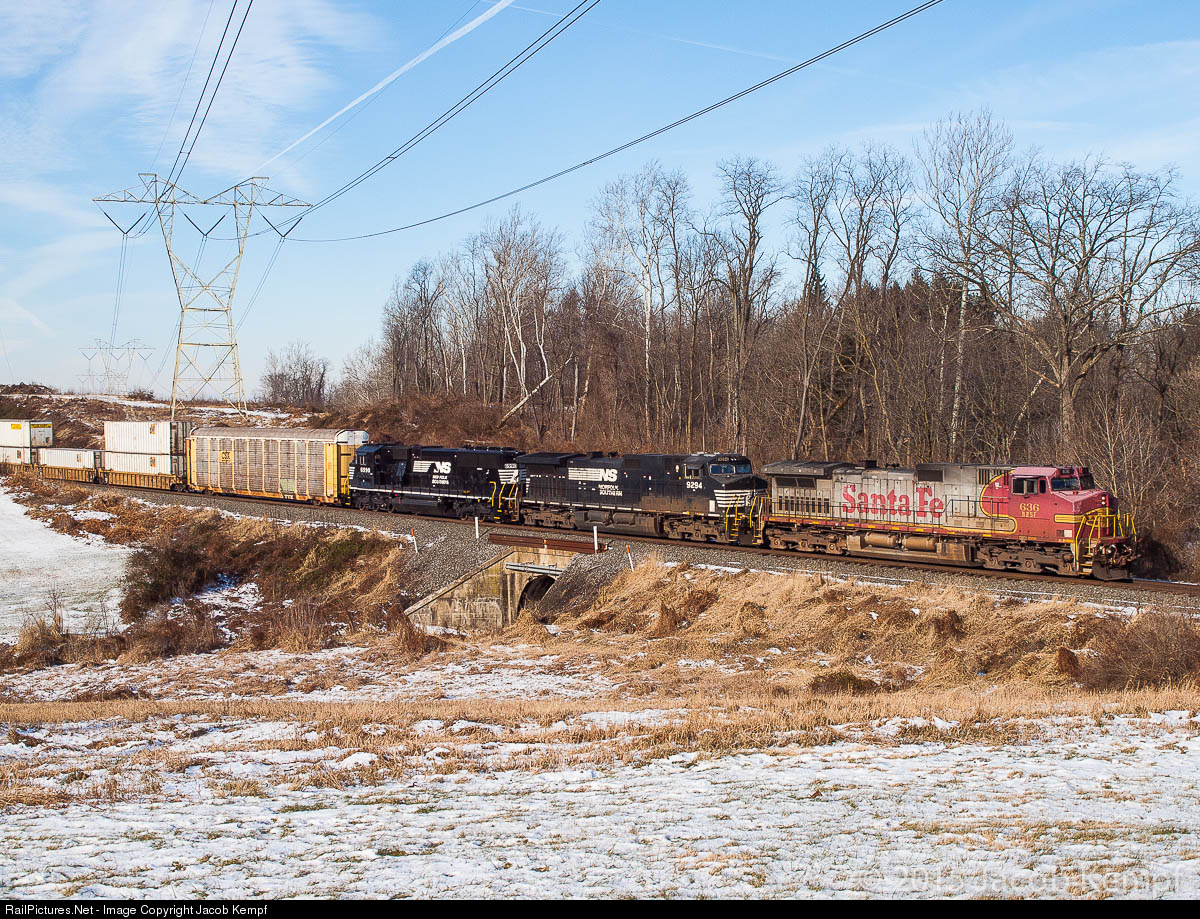 A rather faded BNSF warbonnet leads 212 eastbound on the NS Lurgan Branch on a beautiful winter morning.