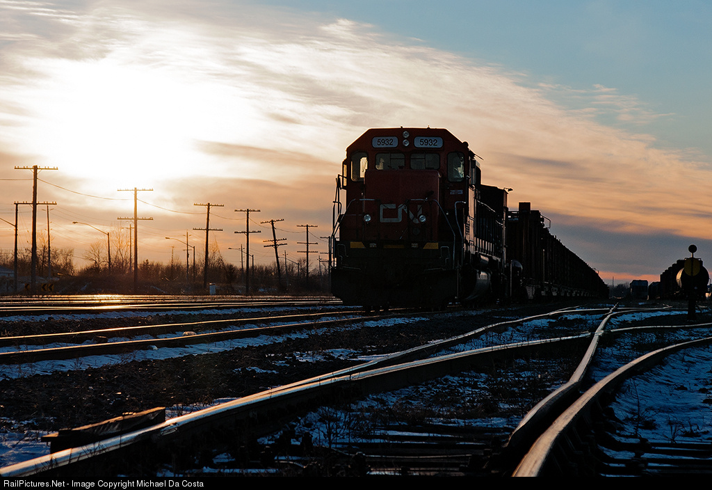 | The ride to Belleville ! Built by EMD as MP 3177, acquired by CN in 1990 from Union Pacific, this old girl still has it as she sits tied down in track BY13 at Belleville on a rail train. Mean while I enjoy the view and warmth of the setting afternoon winters sun waiting on a ride back to Toronto. |