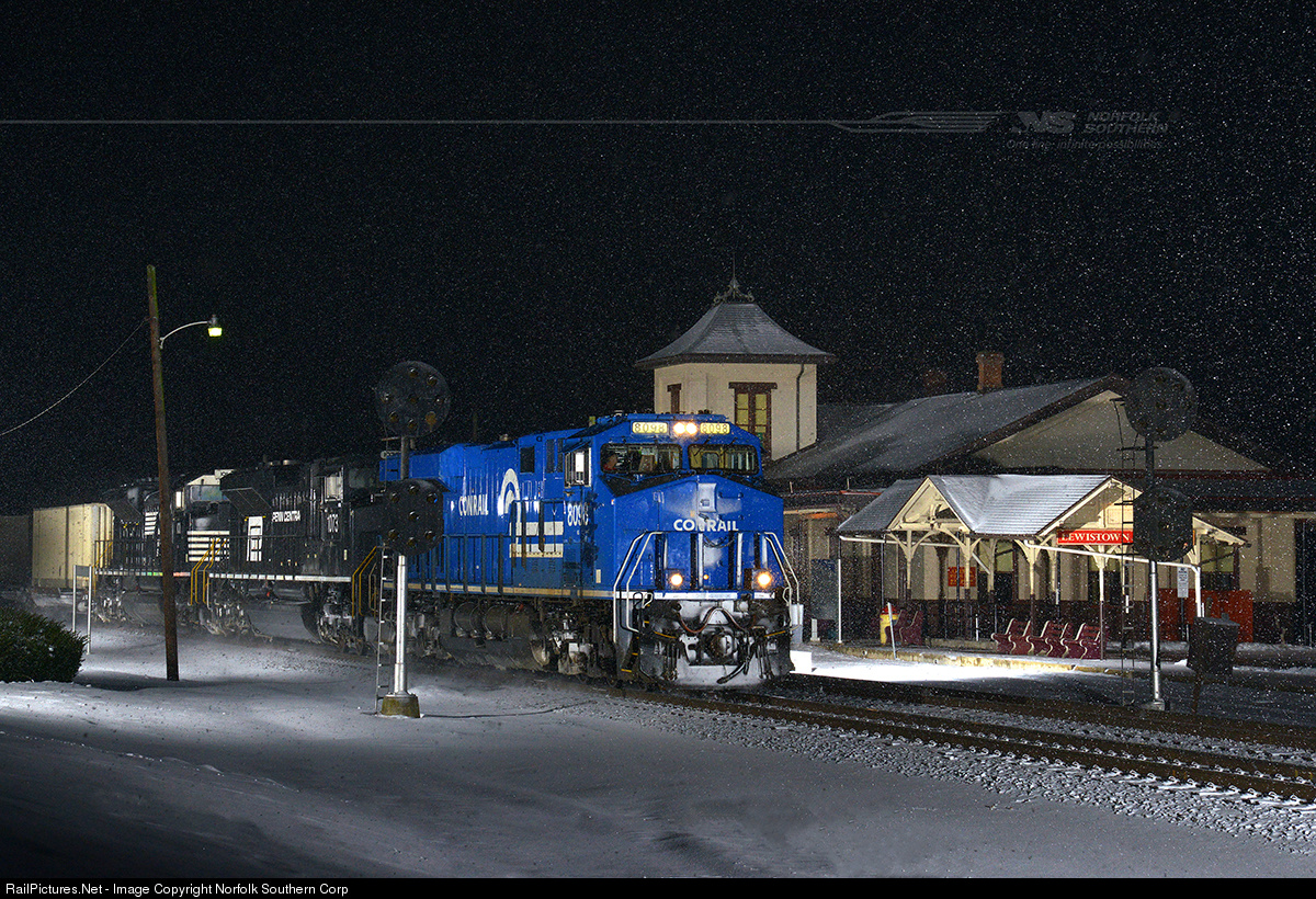With the majority of its system-wide journey behind it, intermodal train 24M streaks through Lewistown, Pennsylvania during a snow flurry, past the historic Lewistown Junction station. Built in 1849 by the Pennsylvania Railroad, it is thought to be the oldest station in continuous use in the United States, as Amtrak still serves the station twice daily. The station is now owned and operated by the Pennsylvania Railroad Technical and Historical Society. Having departed Chicago about 18 hours ago,the Conrail and Penn Central heritage units compliment the scene as train 24M draws nearer to its destination of Baltimore. Photo by Casey Thomason. For more information about Norfolk Southern, visit www.nscorp.com