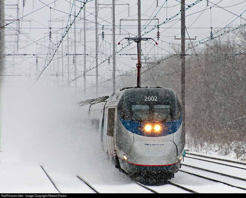| Amtrak 2158 might have been the first northbound Acela Express train to operate on the morning after a predicted heavy snowfall led to the shutdown of transportation systems across the New York metropolitan area. The storm wound up taking a track farther to the east, sparing the region but leaving commuters with few options during the morning commute. By late morning, service on the Northeast Corridor seemed to be returning to normal levels. |