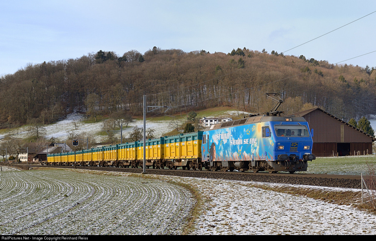 | 456 143 from BLS, leased by Swissrailtraffic, heads a rake of container cars loaden with toxic material from hazardous waste site Kölliken to Niederglatt. |