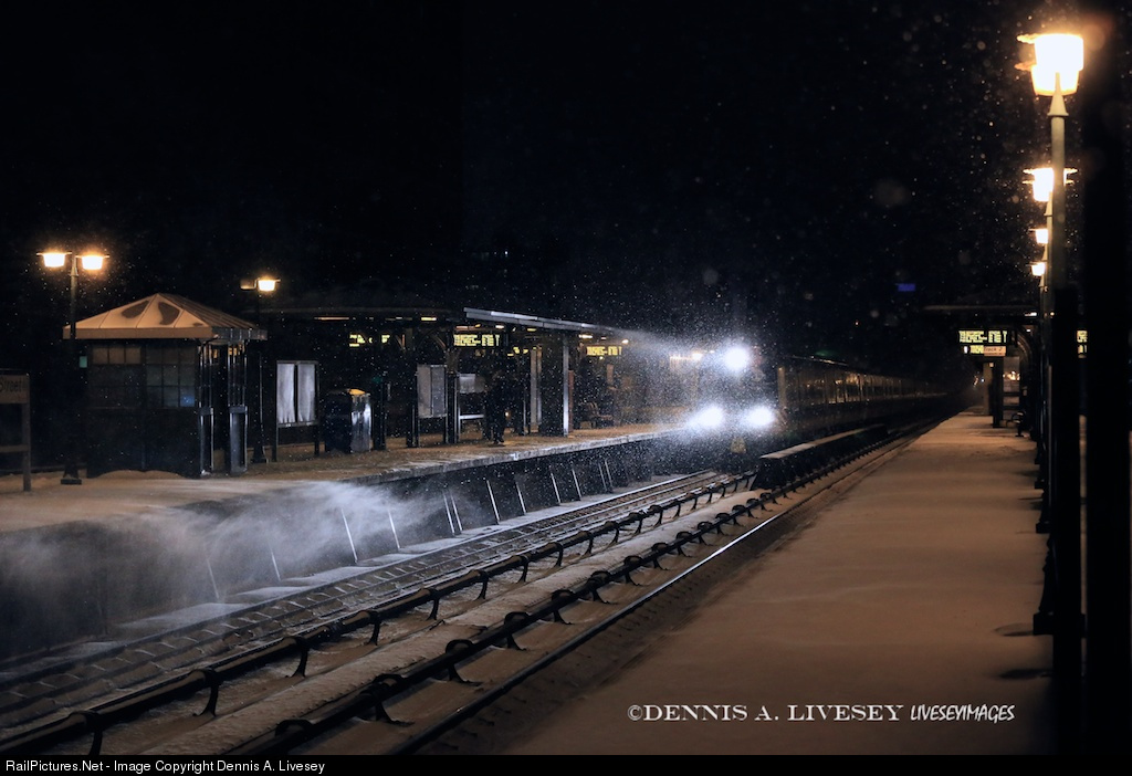 The 7:15 Metro-North Railroad Harlem Division train to White Plains is stopping at 125th St Station during a nor’easter snow storm. The suburbanites are escaping the city because of an expected super snow storm. Fortunately, the storm only brushed New York City and 48 hours later, all was normal again.