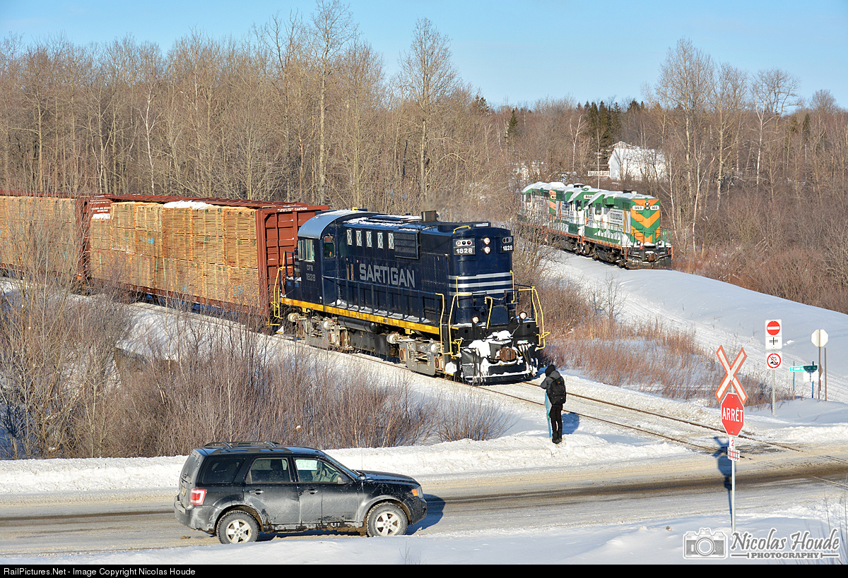 In the sunset, CFS 1828 South pass beside the ex-QCR engines at Scott, QC with 2 cars. The ex-QCR engines are QCR GG3, QCR SG2, and QCR RG5. And, in front of the CFS 1828, you can see Dannick Fournier, a RP.net contributor, also taking pictures of the same train.