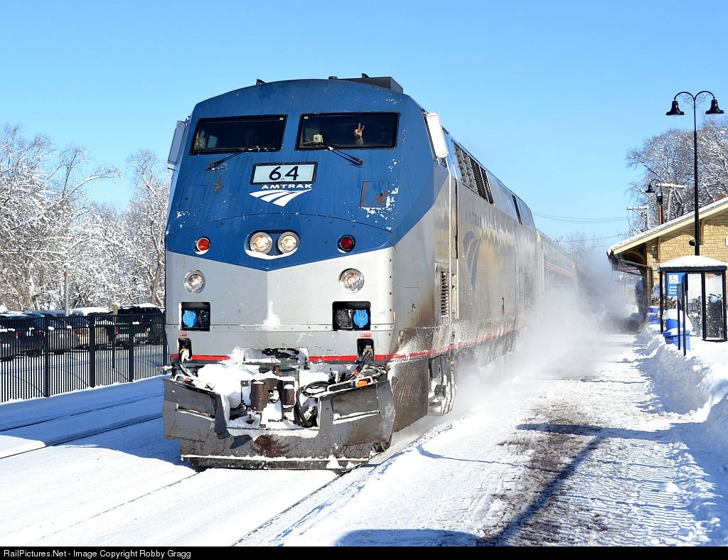 RailPictures.Net Photo: AMTK 64 Amtrak GE P42DC at Lockport, Illinois by Robby Gragg