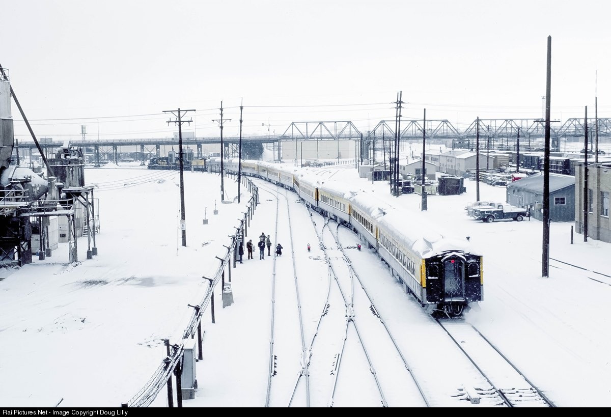 The Rio Grande Ski Train threads its way out of Denver Union Station.