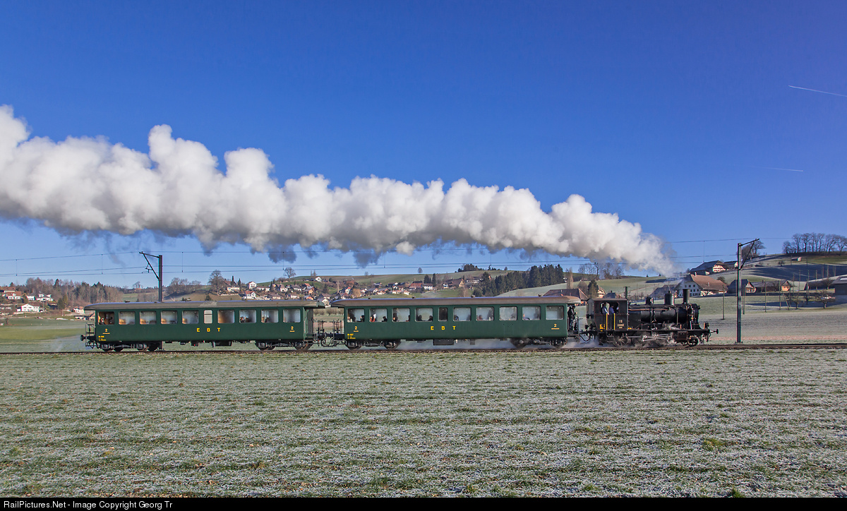 | 2-6-0 T steamlocomotive Ed 3/4 # 11 of the former Langenthal-Huttwil-Bahn (LHB), built in 1908 by SLM Winterthur and now running for the association Historische Emmental Bahn (VHE) in Huttwil, with a special train for the Railway Touring Company from GB, near Rohrbach between Langenthal and Huttwil. |