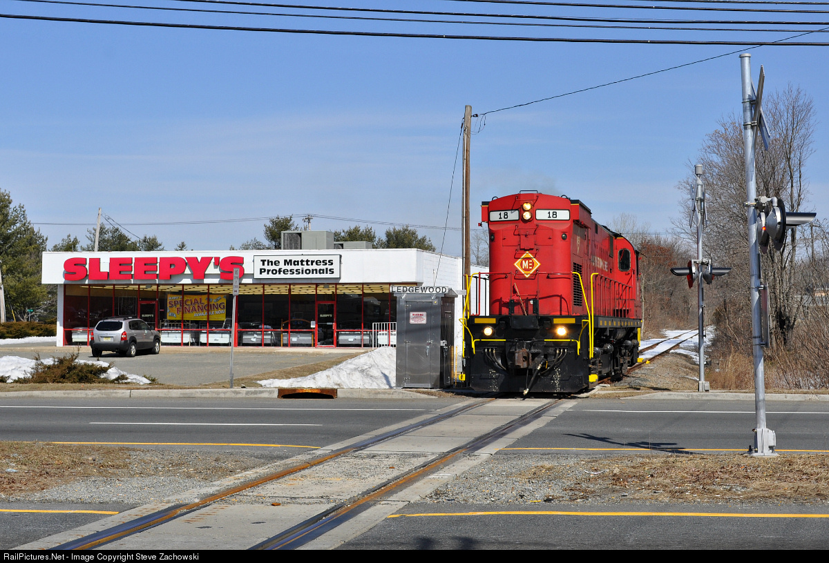 Prior to 2014 the M&E High Bridge Branch only saw use for the annual Toys for Tots train, however in 2014 a new customer started to receive a carload once every couple of weeks bringing the once dormant branch back to life. Here M&E 18 waits for traffic to adhere to the crossing protection before proceeding West to Tripak to pick up an empty hopper. |
