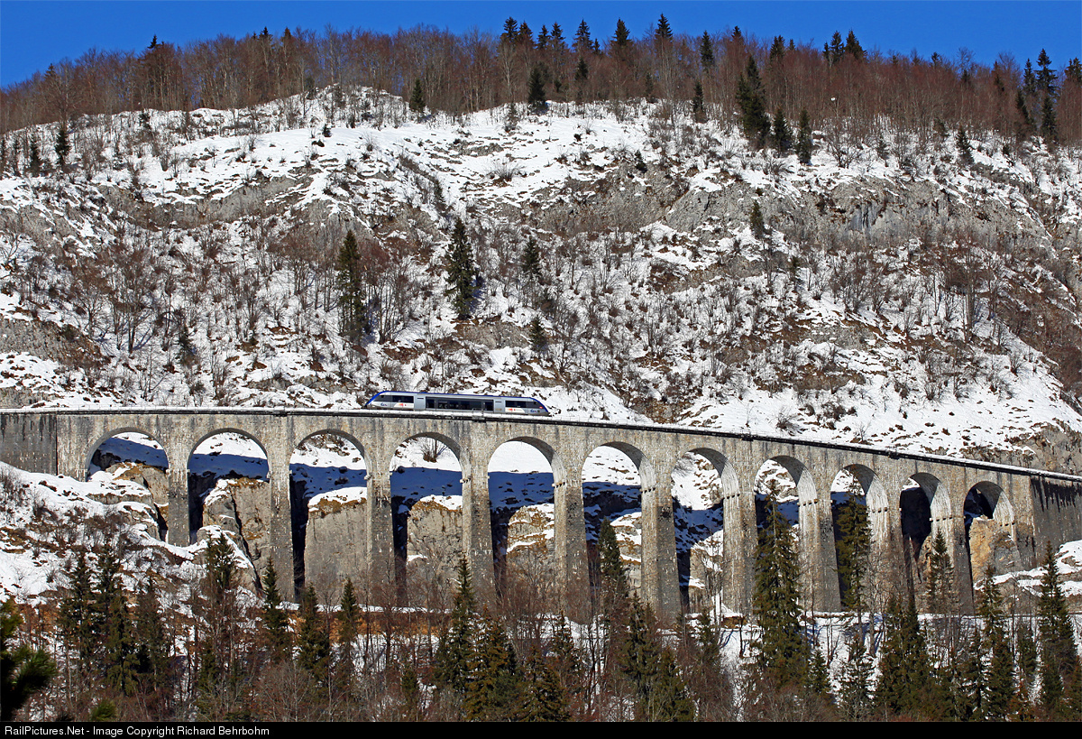 | Near Morez, on the line Dole - Saint-Claude, there is a section with six viaducts. The "Crotteviaduct" has a length of 165m (541ft). |