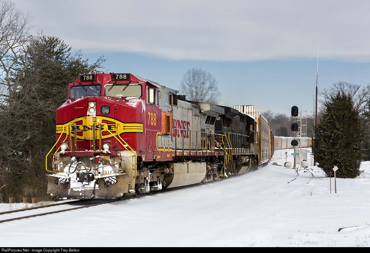 After a fresh snow, BNSF Warbonnet 788 leads the NS 272 south through Stoneville on a cold winter morning.