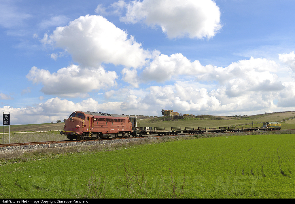 | 6-axle diesel Nohab locomotive; there are 4 of these 3-series units in Sicily, former belonging to Norwegian railways and built under American license for several European railways. Now working on the train yard. |
