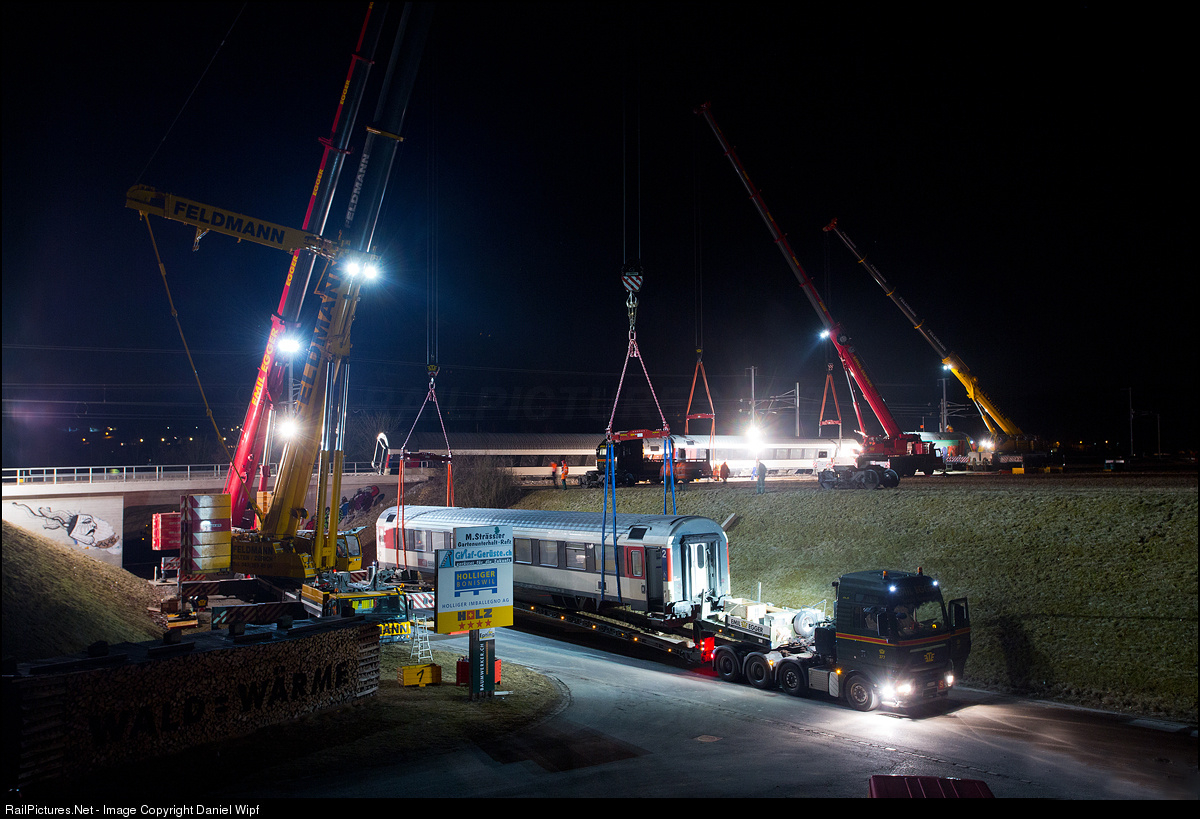 At the late evening, tidying works are still afoot. Due to the severe damage to the vehicles are transported on the road to the workshop at Olten / Yverdon |