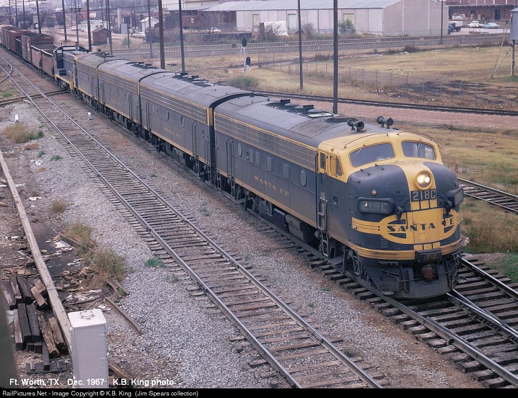 RailPictures.Net Photo: ATSF 218C Atchison, Topeka & Santa Fe (ATSF) EMD F7(A) at Fort Worth, Texas by K.B. King (Jim Spears collection)