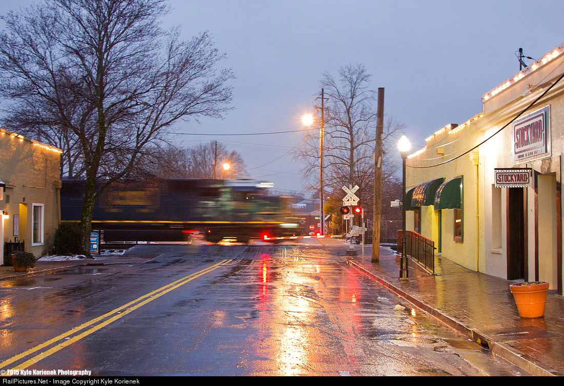 With winter storm Remus putting most of the southeast under its grasp, the trains keep rolling. The irony of it, as an employee of CSX down in Atlanta for training, our class was canceled today due to the weather, which made this shot possible. As the daylight faded, car traffic in Marietta dwindled to nothing, and left Mill St. empty. As a result, CSX Q582 didn't really hold up anything as it hustled north to Nashville, TN. Special thanks to Kyle Yunker for making this shot possible.