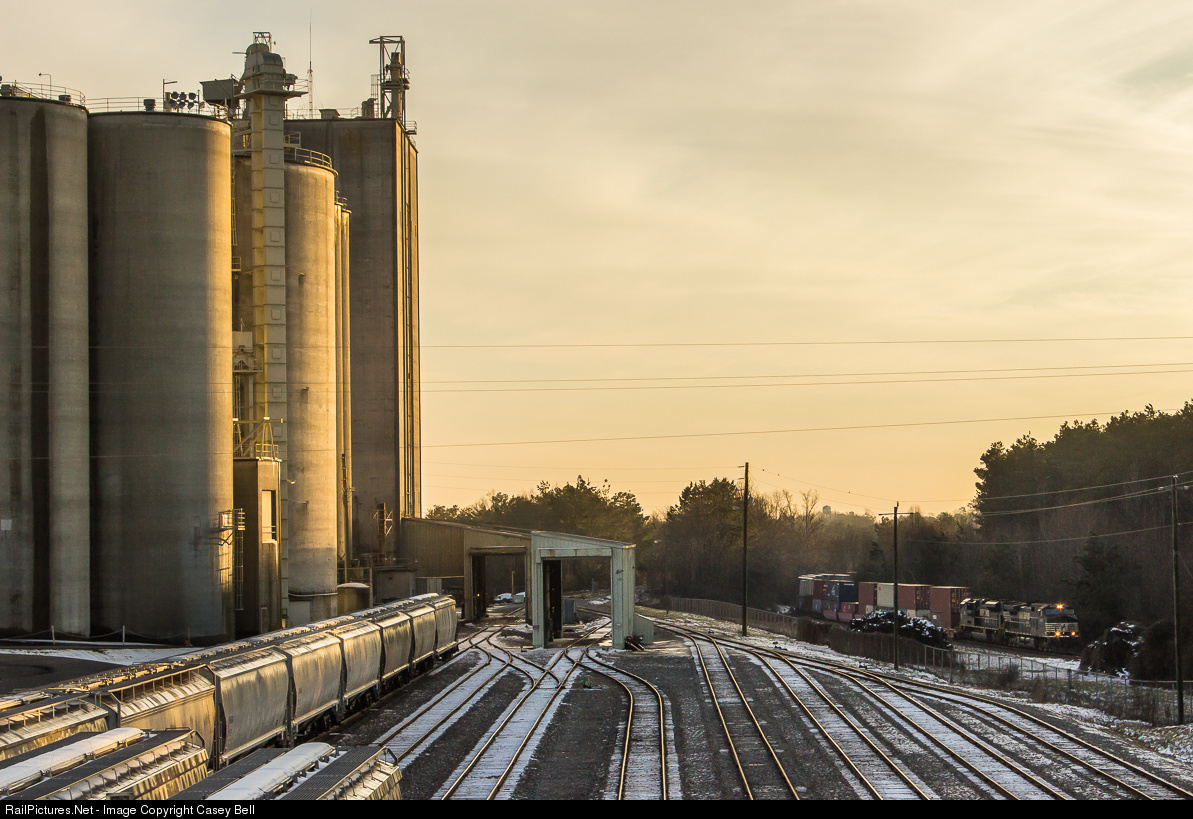 | NS 238 is seen here passing one of two Fieldale Farms located in Baldwin, GA. NS#9445 and a SD70ACe begings to round the bend towards the control point at Baldwin. He would then come to a stop to let the crew on P37 check out the hot axle that had been dragged all the way from Atlanta to here. The cause was a brake not being released 100%. |