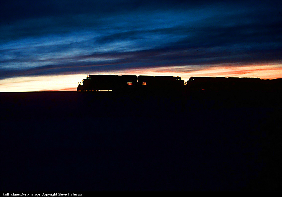 In the last light of January 9, 1990, Rio Grande’s 5411 East struggles to crest the Craig Branch summit at Toponas, Colo., headed for Denver. Two SD40-2T tunnel motors lead the way.