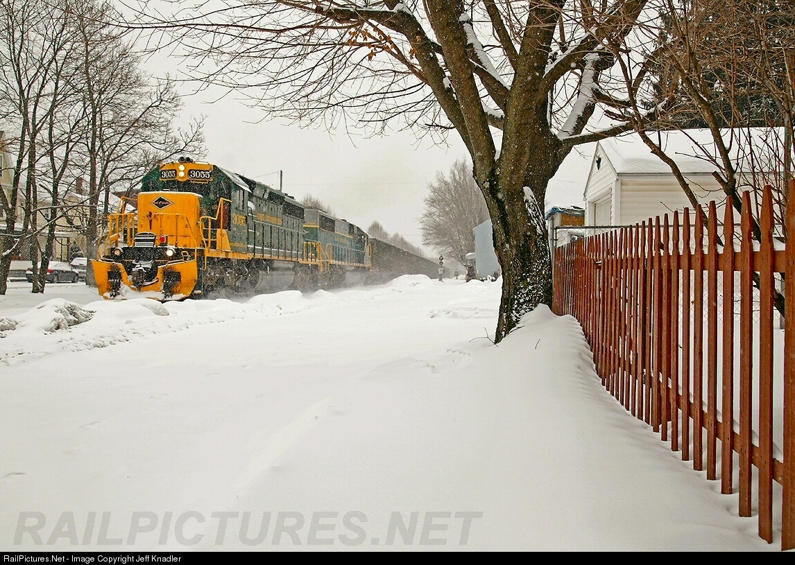 The #3055 and #5022 are leading 50+ empty Rapid Discharge hoppers northbound at Rose Street. The fresh snow is really kicking up as the train accelerates up the grade of the Little Schuylkill. |